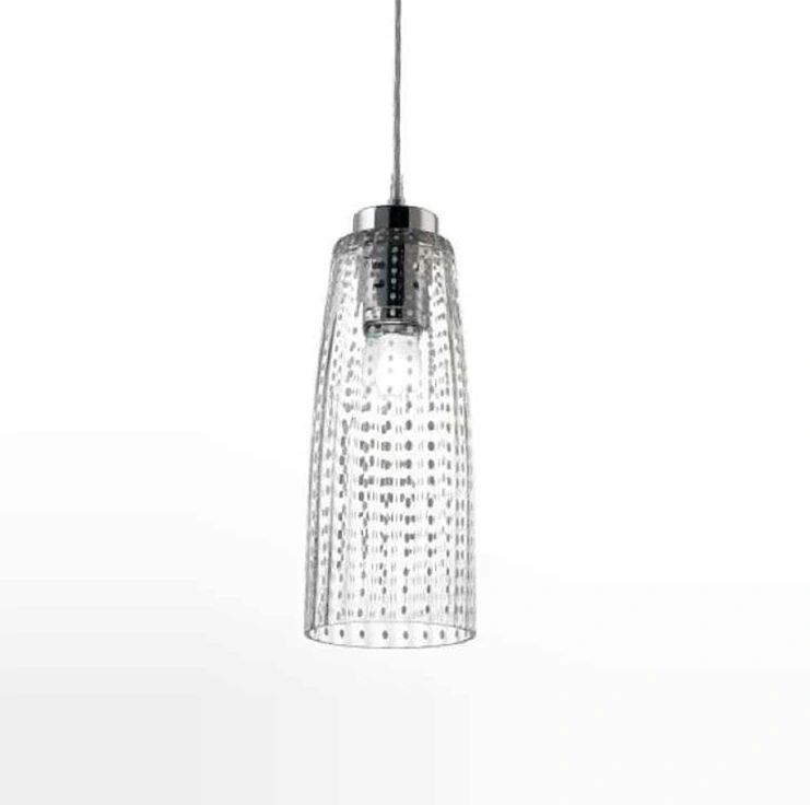 AA1LPR0701 zavesne svietidlo 1x100W/E27, d14/v42cm, chrom/dekoracne sklo cire, Handmade in Italy