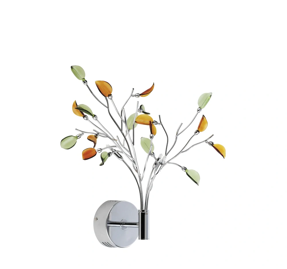 AB1G88093/72 nastenne svietidlo 3x20W/G4, v45cm, chrom/zeleno-oranzove sklene listy