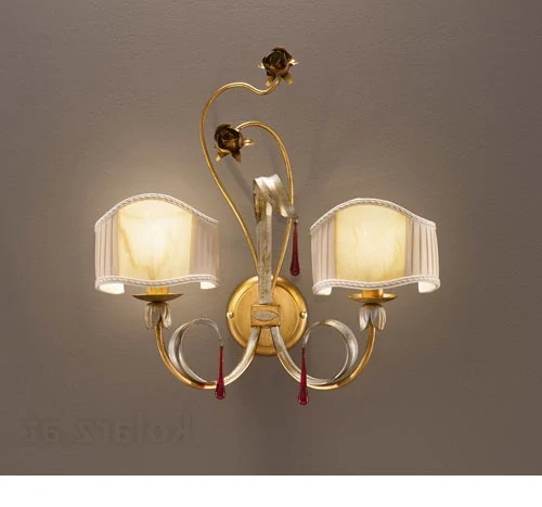 AK10228.62.SG nastenne svietidlo 2x40W/E14, v49cm, anticka zlata/strieborna/biely textil/Murano