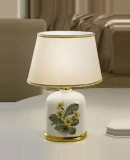 AK10307.71.1 stolne svietidlo 1x60W/E27, v28cm, zlata-biela keramika +dekor kvietky primula/biely textilSkladom 4 ks140 €/ ks113,82 € bez DPH
