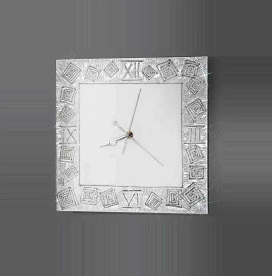 AK10335.20.Ag nastenne hodiny 30x30cm, matne sklo/dekoracia strieborna, Handmade in Italy - rucna malba na skleSkladom 1 ks120 €/ ks97,56 € bez DPH