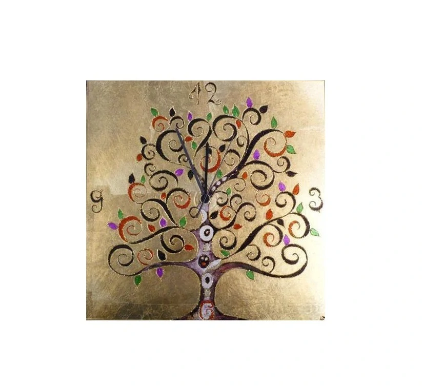AK10417.20.Mu nastenne hodiny 30x30cm, matne sklo/dekoracny strom farebny, Handmade in Italy - rucna malba na skleSkladom 2 ks142 €/ ks115,45 € bez DPH