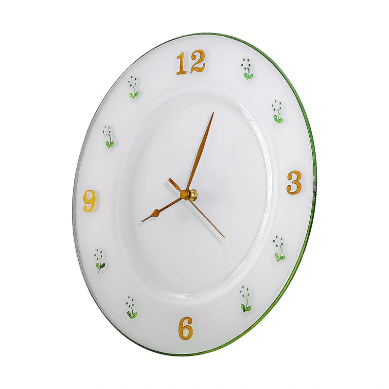 AK1731.20.21 nastenne hodiny d33cm, matne sklo/zeleny kvietok, rucna malba na skle