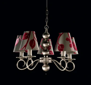ALU-4L29106/5 luster 5x60W/E14, s55cm, strieborna/sedy textil/dekoracia fialovaSkladom 1 ks189 €/ ks153,66 € bez DPH