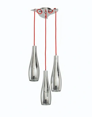 ANK-6470/3C.kRE zavesne svietidlo 3x40W/E14, 3x11cm, chrom/zrkadlove sklo/cerveny kabelSkladom 2 ks199 €/ ks161,79 € bez DPH