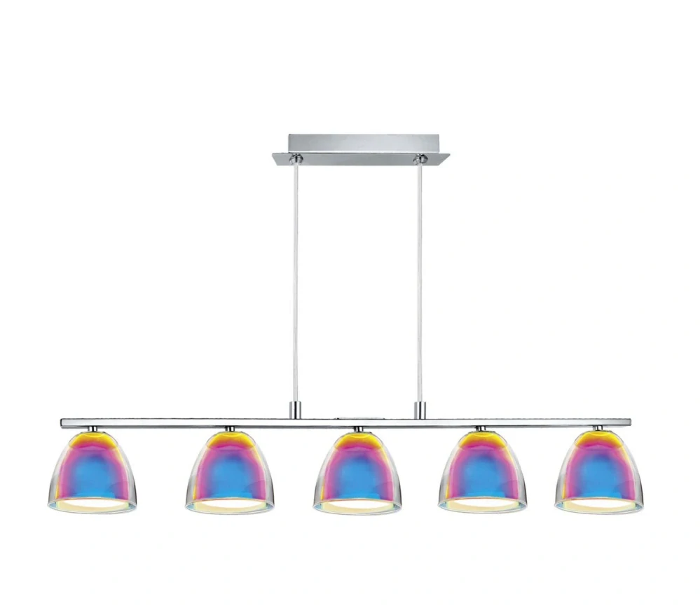 BE290079 zavesne svietidlo 5x40W/G9, s91cm, chrom/opal/dichroicke farebne sklo