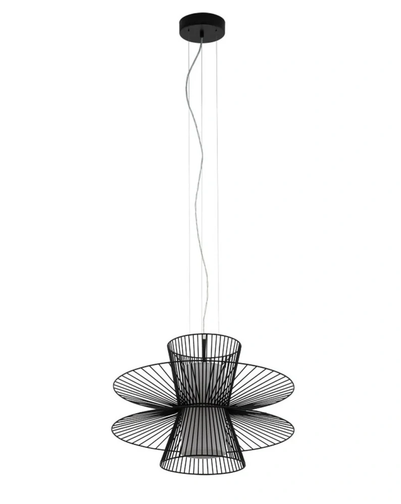 BE297761 zavesne svietidlo 1x60W/E27, d58cm, ocel/cierna/biely textil