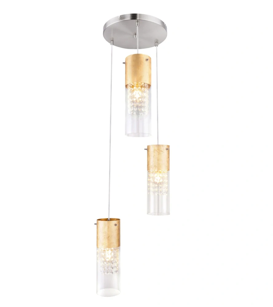 BG115908-3G zavesne svieitdlo 3x60W/E27, d30cm, nikel/platkove zlato/cire sklo/kristal ciry
